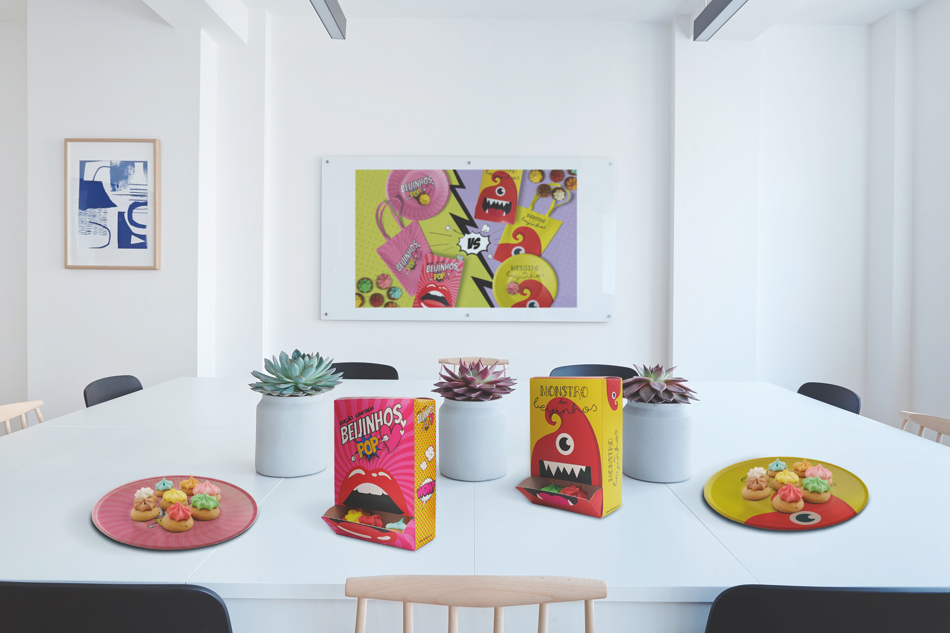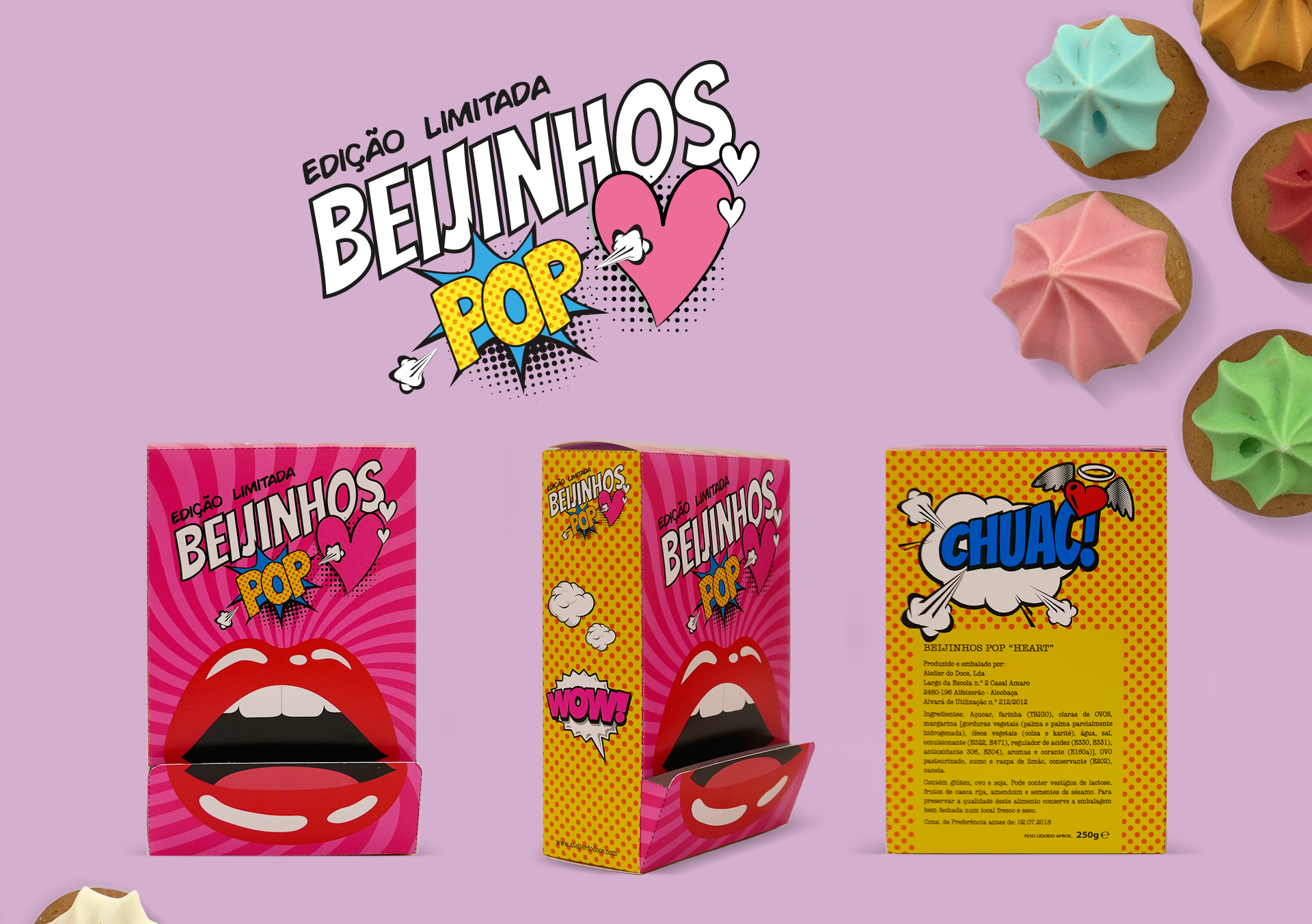 Coloridos e doces, fazem as delícias dos mais novos e dos mais crescidos! Com duas embalagens diferentes para consumidores distintos... O Monstro dos Beijinhos destina-se ao público infantil, numa alusão ao Monstro das Bolachas. Os beijihos POP "Heart", destinam-se ao público adulto, numa edição especial dedicada à Pop Art, colorida como os beijinhos e directo ao coração. As embalagens têm a função de dispensadores e são ideais para servir à mesa.