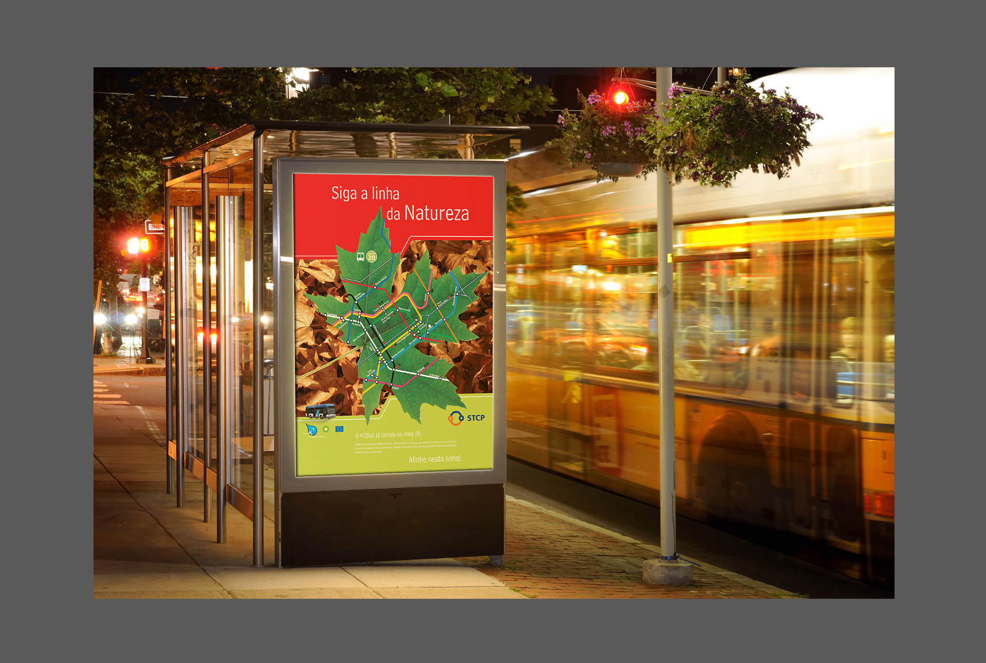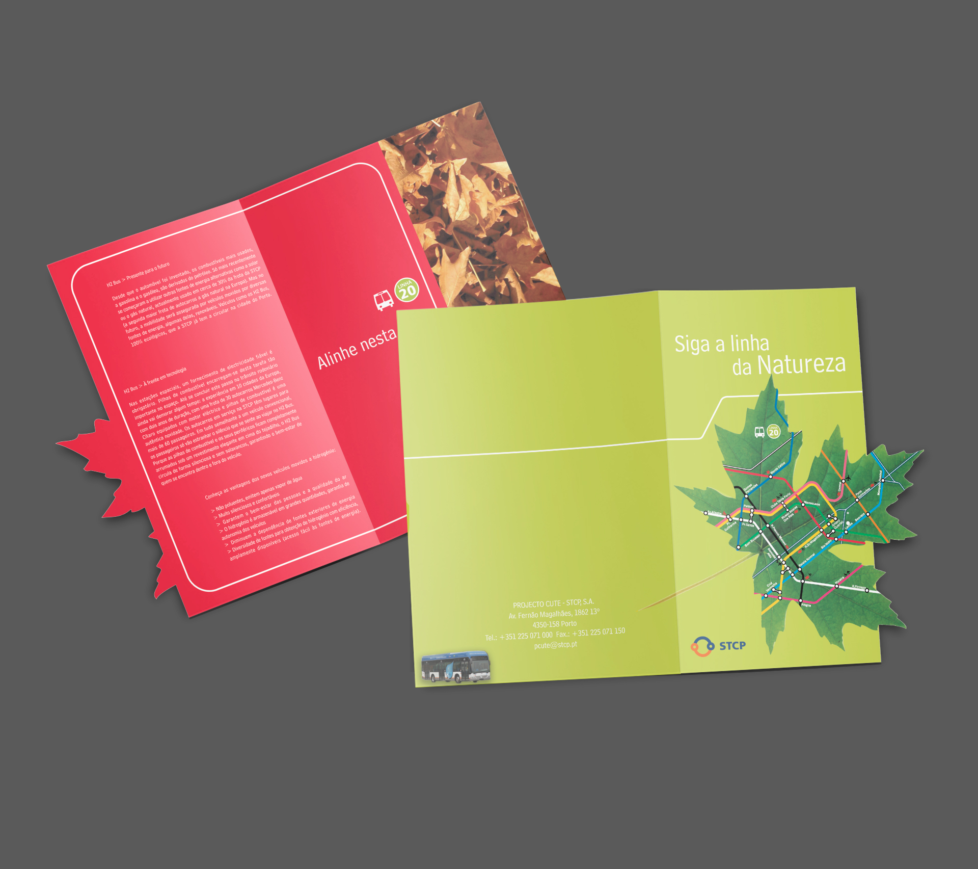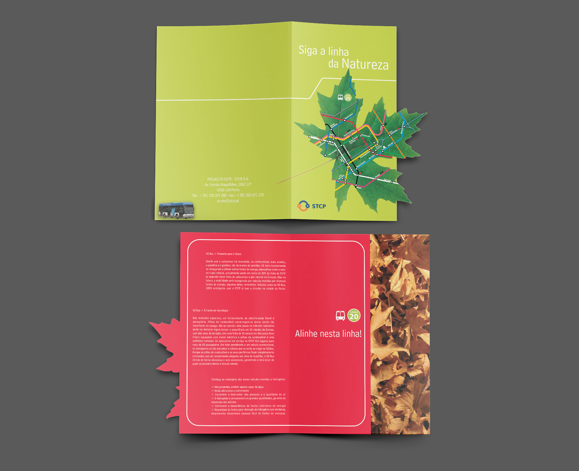 Anúncio de imprensa, folheto e outdoor para o Projecto CUTE, da Soc. de Transportes Colectivos do Porto (STCP) - experiência piloto com três autocarros em serviço público com células de combustível funcionando a hidrogénio.
