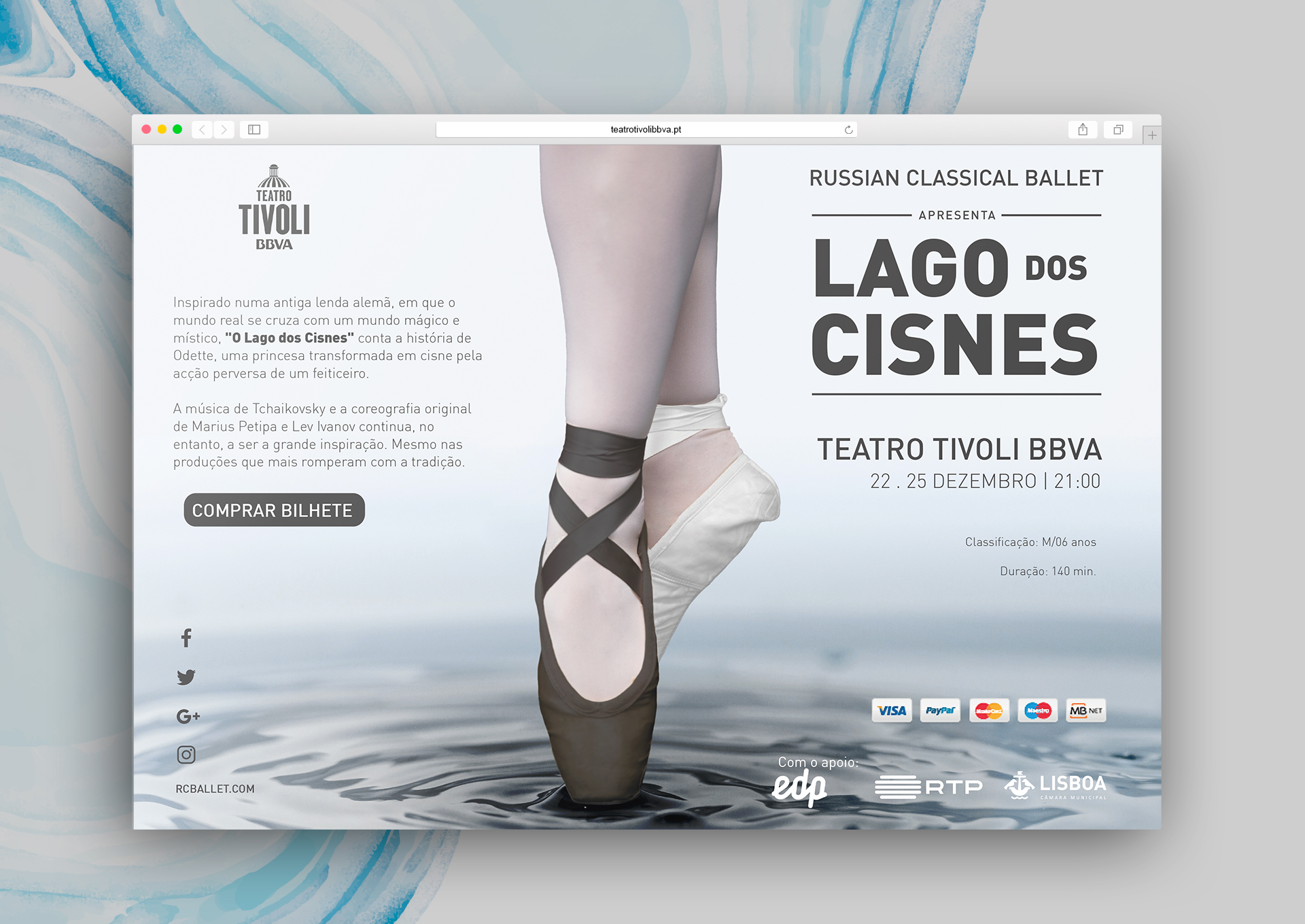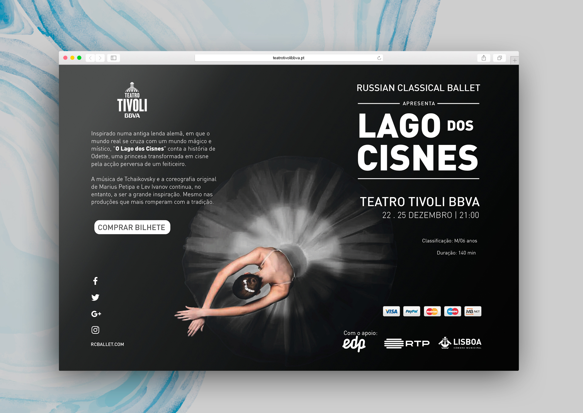 Bailado inspirado numa antiga lenda alemã, em que o mundo real se cruza com um mundo mágico e místico, "O Lago dos Cisnes" conta a história de Odette, uma princesa transformada em cisne pela acção perversa de um feiticeiro.