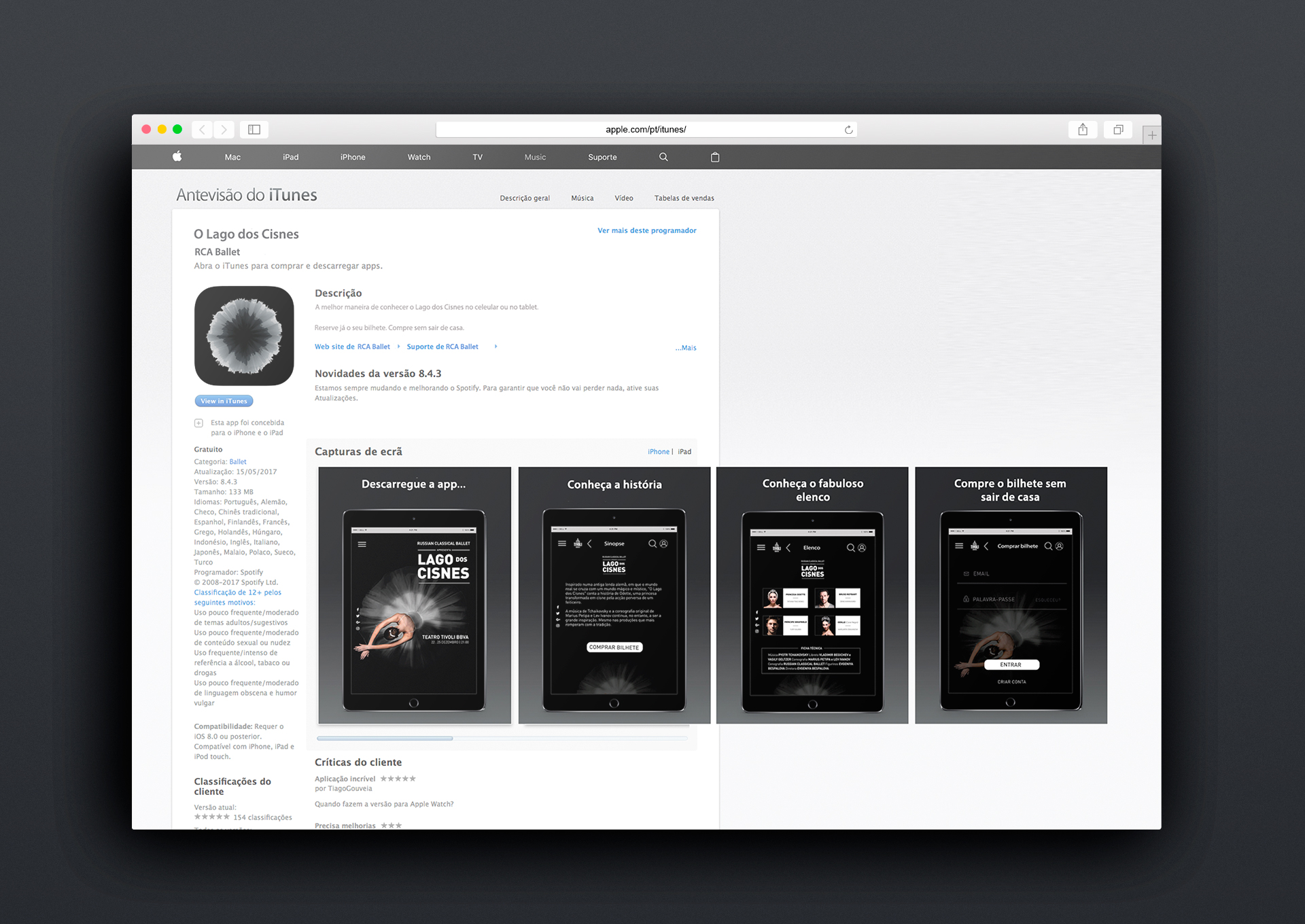 > Simulação da página da App na AppStore