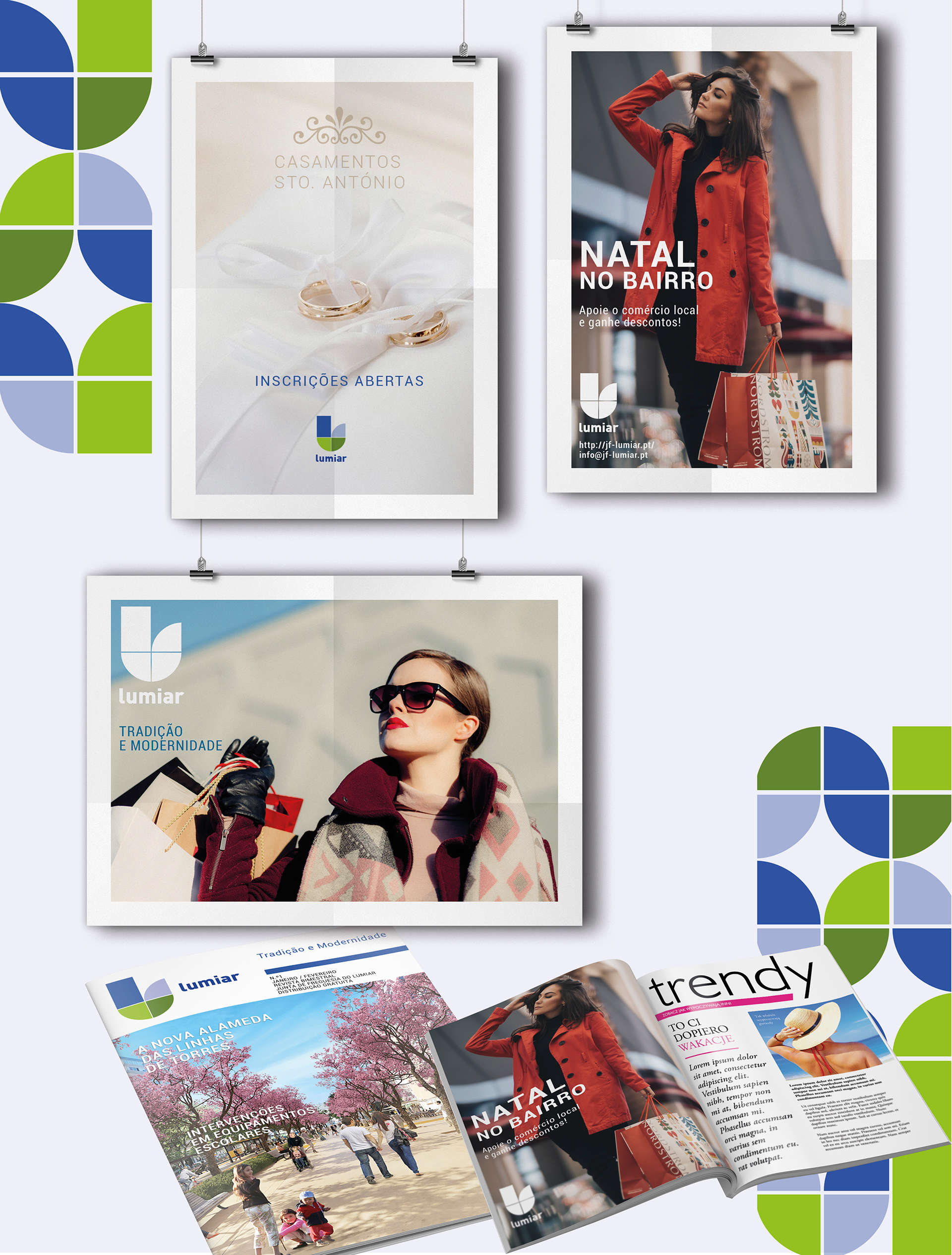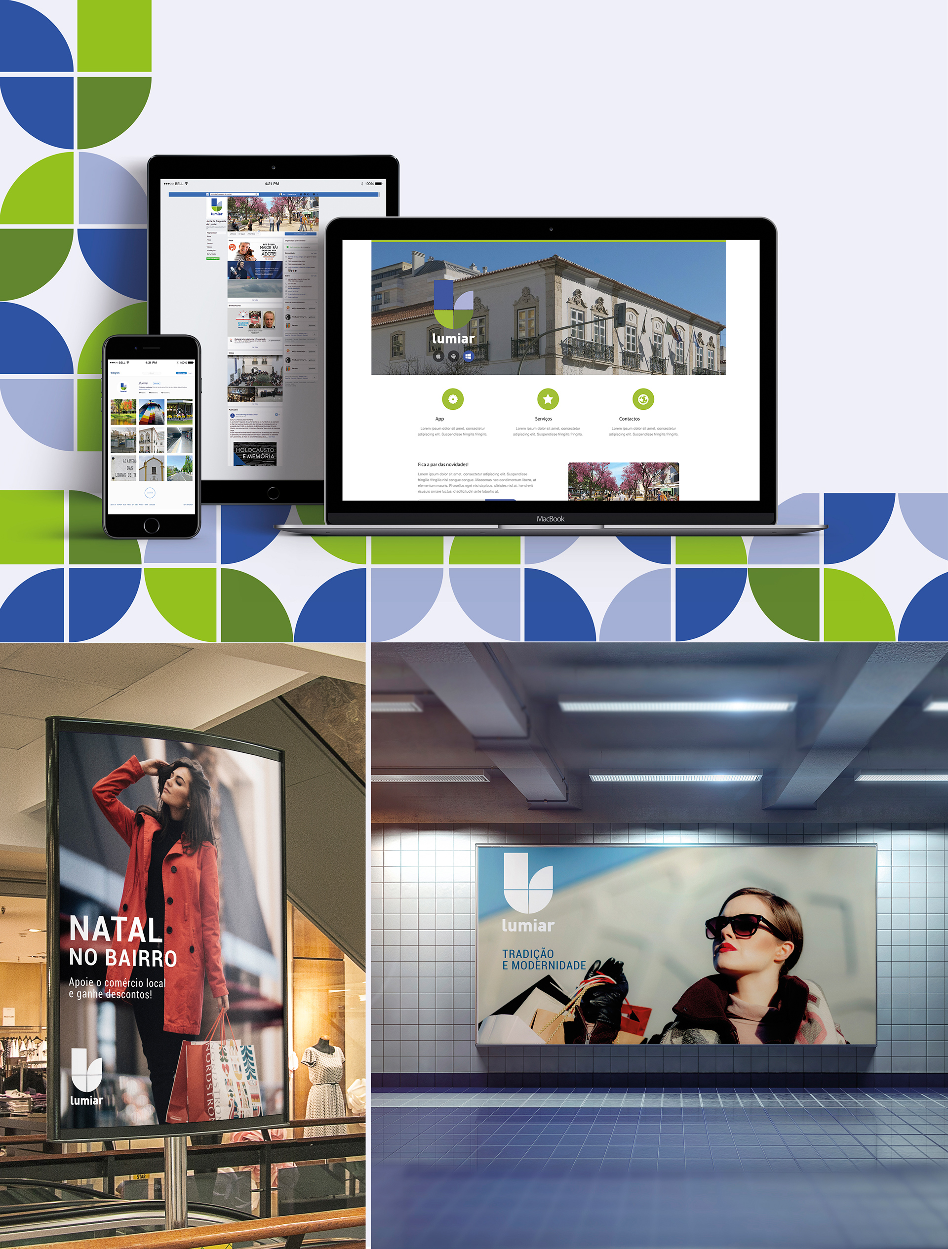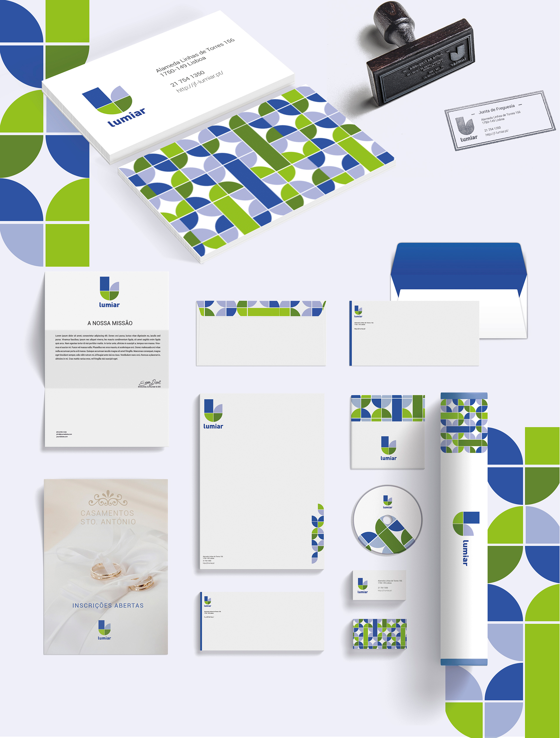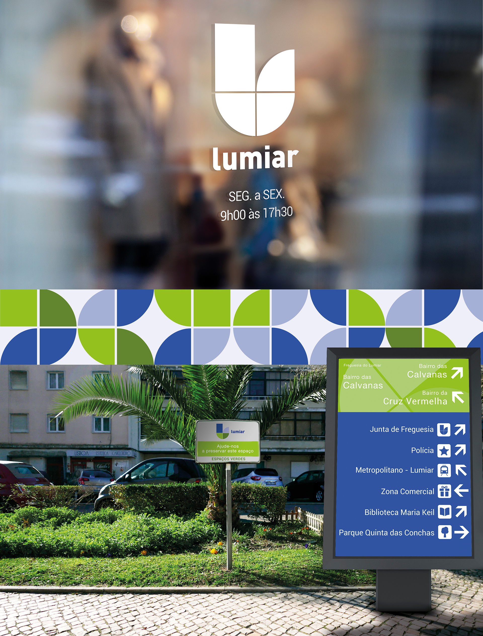 Rebranding da marca que representa actualmente a instituição pública – Junta de Freguesia do Lumiar com a criação de uma nova assinatura para a instuição e serviços adjacentes contemplando uma série de aspectos obrigatórios que uma marca desta dimensão exige.